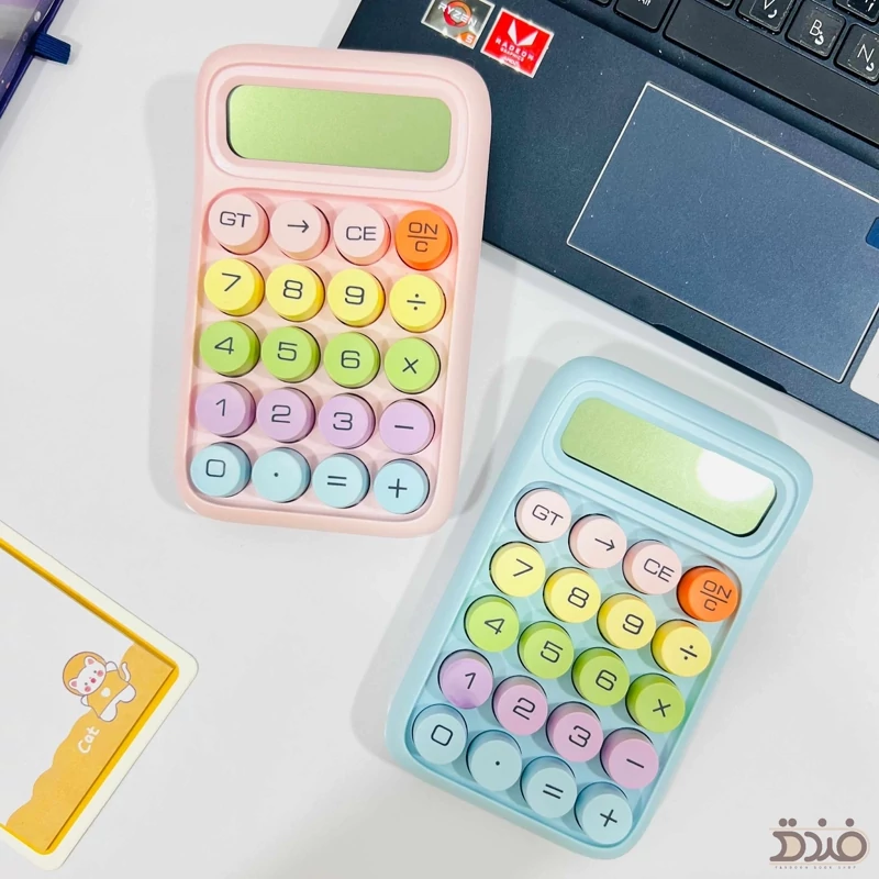 ماشین حساب فانتزی دکمه رنگی (پینترستی) پاستلی، وارداتی