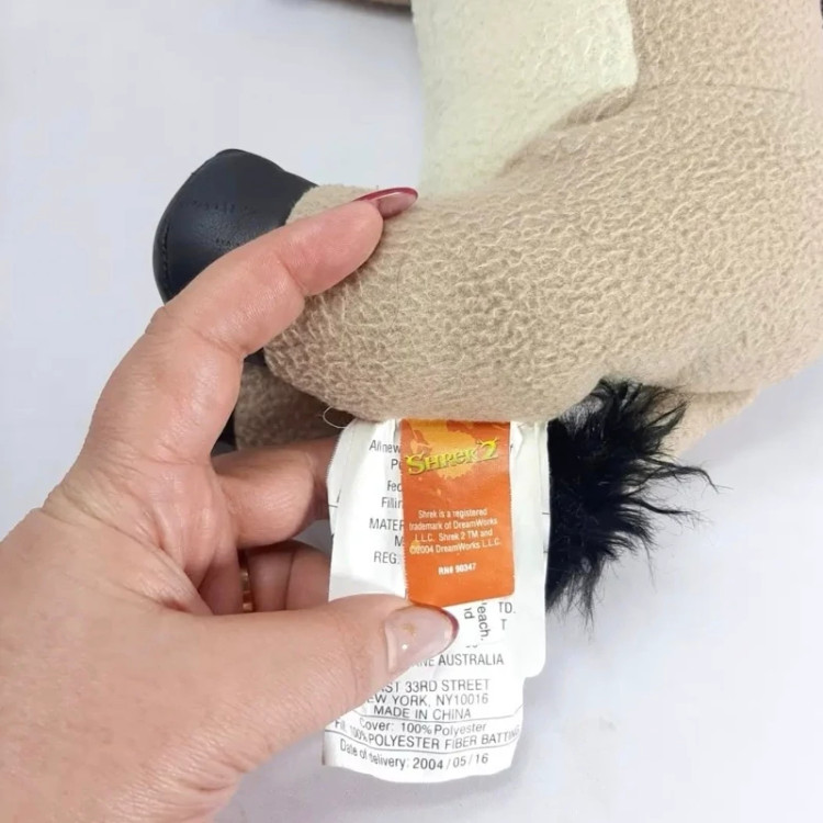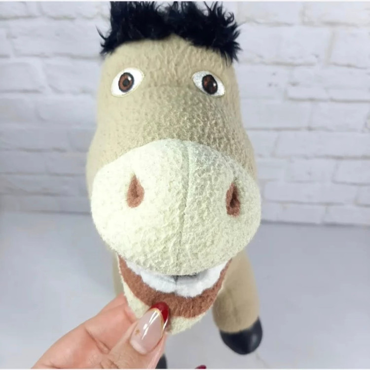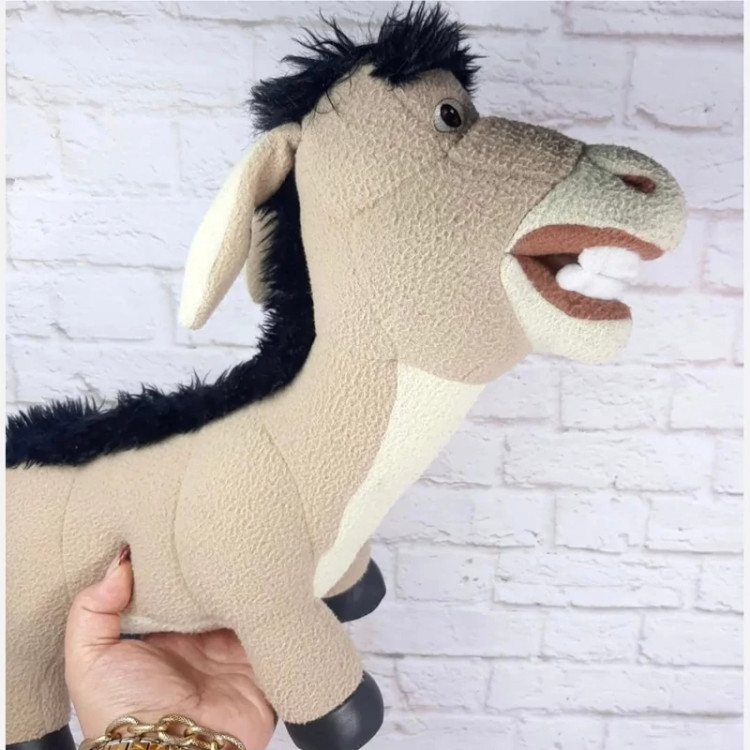 عروسک خارجی و اورجینال فوق العاده زیبا خاص و کمیاب خر شرک. ایشون دندون هاش ارتودنسی شده و بسیار مرتبه 😂😂 سم های ایشون چرمی ، خودش فرفری ، مثل عکس روی پاهاش می ایسته.یک کار بسیار خاص، کمیاب و با کیفیت . قابل شستشو و ضد حساسیت.