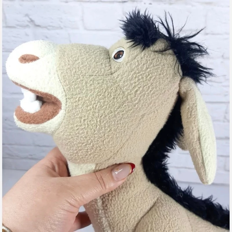 عروسک خارجی و اورجینال فوق العاده زیبا خاص و کمیاب خر شرک. ایشون دندون هاش ارتودنسی شده و بسیار مرتبه 😂😂 سم های ایشون چرمی ، خودش فرفری ، مثل عکس روی پاهاش می ایسته.یک کار بسیار خاص، کمیاب و با کیفیت . قابل شستشو و ضد حساسیت.