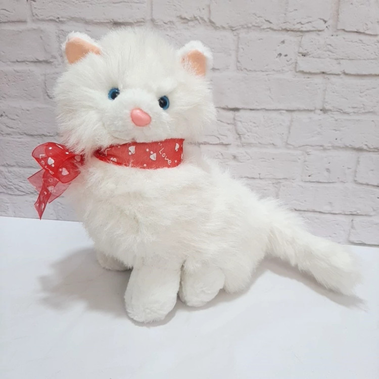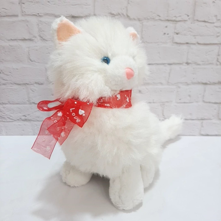 عروسک خارجی و اورجینال گربه سفید با خز بلند ابریشمی ، دماغ پلاستیکی صورتی براق داره ، داخل گوش هاش صورتی هستند . دور گردنش پاپیون قرمز قلبی بسته ، ضد حساسیت و قابل شستشو ست . کیفیت درجه یک و عاااااالی . بسیار زیباست .