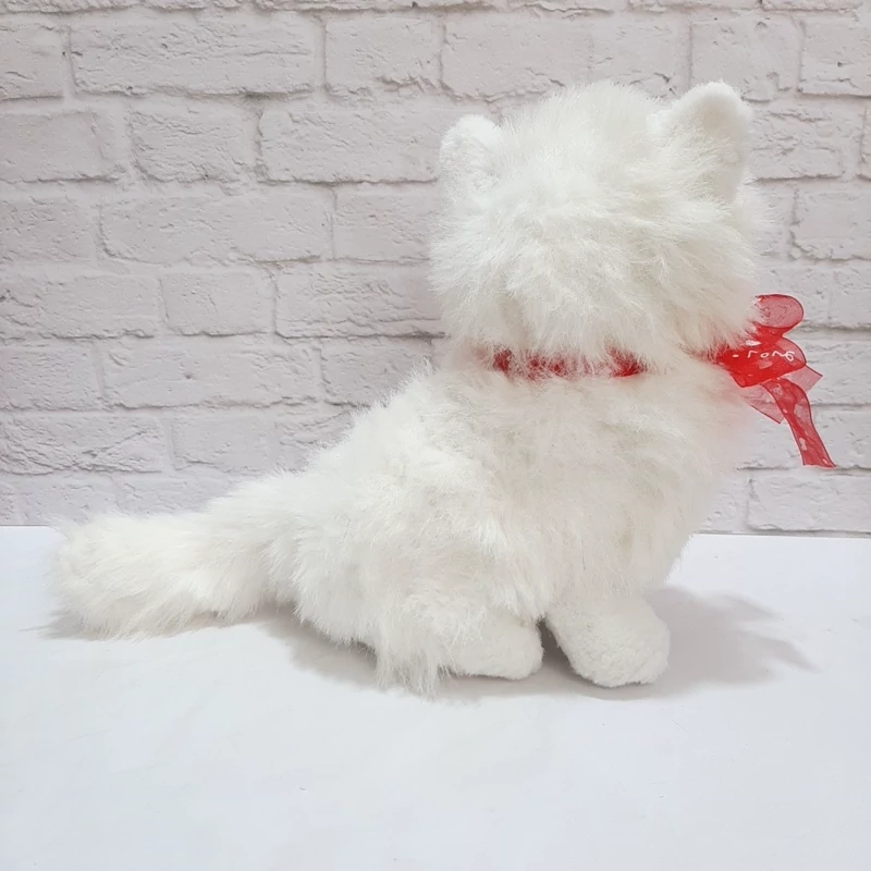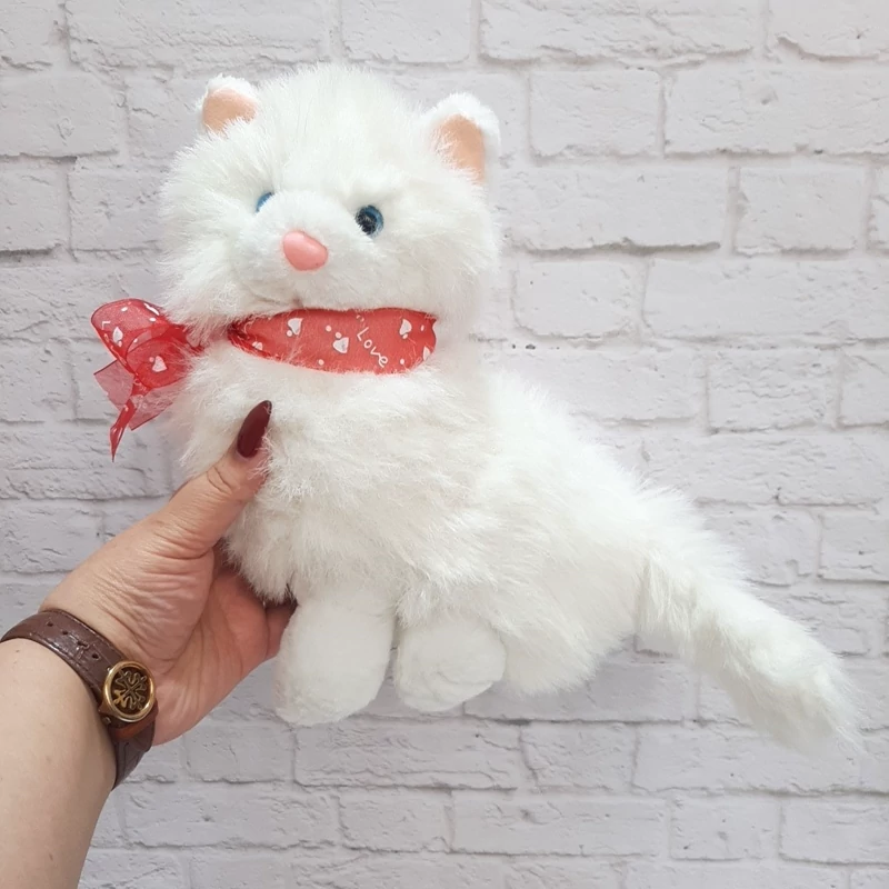 عروسک خارجی و اورجینال گربه سفید با خز بلند ابریشمی ، دماغ پلاستیکی صورتی براق داره ، داخل گوش هاش صورتی هستند . دور گردنش پاپیون قرمز قلبی بسته ، ضد حساسیت و قابل شستشو ست . کیفیت درجه یک و عاااااالی . بسیار زیباست .