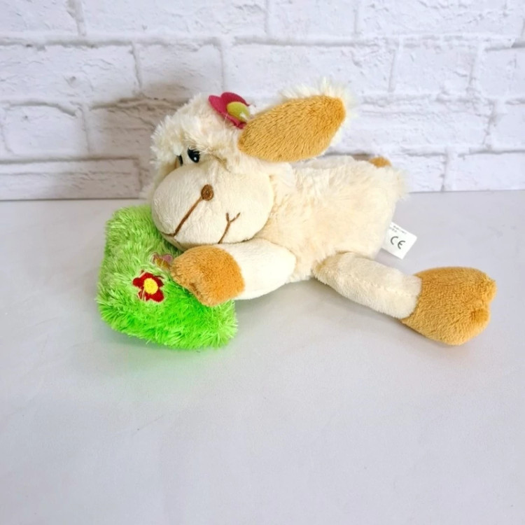 عروسک خارجی و اورجینال فوق العاده زیبا و با کیفیت ببعی خوابیده روی بالشت سبز ، فوق العاده زیبا و کیوت. جنسش مخمل پرز بلند با کیفیت ، براق و ابریشمی ، بسیار خوش رنگ .بالای سرش بند داره برای آویزان کردن . ضد حساسیت و قابل شستشو ست .