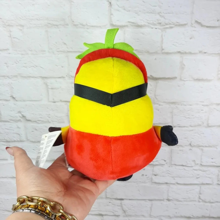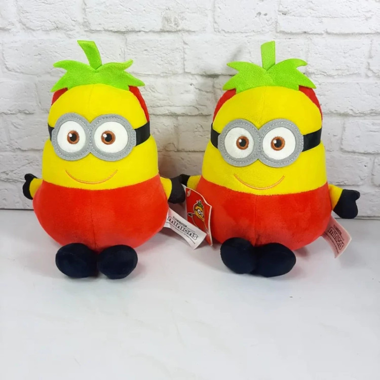 عروسک پولیشی مینیون تگ دار مدل گوجه ای.بسیار زیبا و با کیفیت، تپلی،اجزای صورتش گلدوزی شده،قابل شستشو ست.