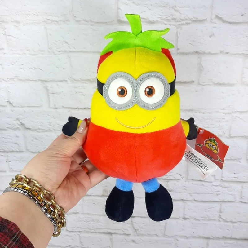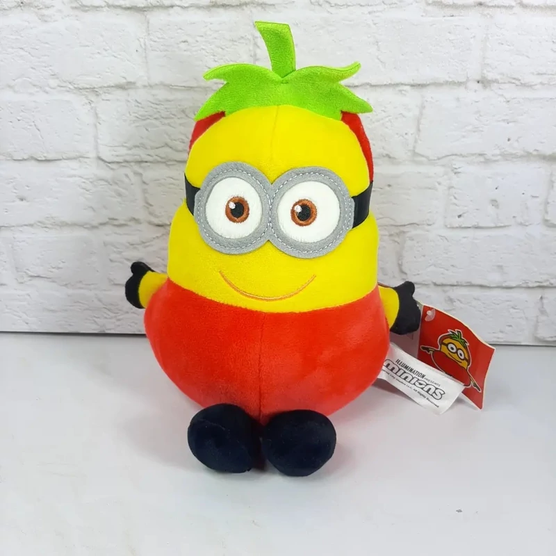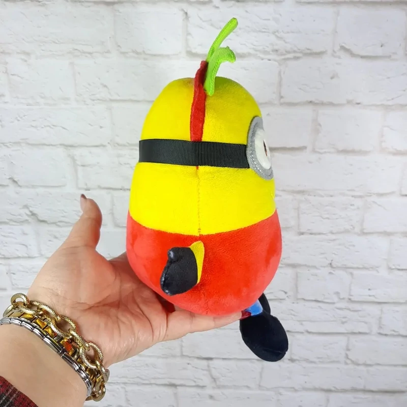 عروسک پولیشی مینیون تگ دار مدل گوجه ای.بسیار زیبا و با کیفیت، تپلی،اجزای صورتش گلدوزی شده،قابل شستشو ست.