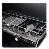 + موارد بیشتراجاقگاز مسافرتی سامسونتی ازجمله وسایل کاربردی در سفرهای طبیعتگردی و کمپینگ به شمار میآید. با استفاده از این اجاق مسافرتی شما دیگر نیازی به حمل زغال یا جمعآوری چوب و هیزم برای تهیه آتش در زمان سفر برای طبخ غذا نخواهید داشت. یکی از ویژگیهای جالب این اجاق، استفاده از کپسولهای استوانهای بهعنوان منبع سوخت و هم گاز بوتان و شهری است، به این معنی که علاوه بر قابلحمل بودن آسان در فعالیتهای کوهنوردی حتی در منزل هم قابل استفاده است. از دیگر خصوصیات این محصول، دارا بودن فندک و کلید کم و زیاد کردن شعله است؛ بهاینترتیب با توجه به زمان موردنیاز برای پخت مواد غذایی گوناگون، میتوانید میزان شعله را کم یا زیاد کنید. این اجاق گاز داری 3 شعله (دو شعله مستقل و یک شعله گریل کن) مجزا می باشد، با توجه به داشتن توری استیل تعبیهشده روی این محصول این امکان را به شما میدهد تا انواع گوشت و سبزیجات را بهآسانی گریل نمایید. و همچنین سینی زیر گریل برای جمع اوری روغن و پس مانده پخ پز شما می باشد که تمیزی خواستی به کیف سامسونتی گاز می دهد، و از دیگر قابلیت های این سینی استیل برای گرم کردن ساندویچ و برشته کردن نان (توست) و ... را دارد. این اجاق گاز سامسونتی داری وسایل جانبی مخصوص برای استفاده بهتر و اسان تر و کاربردی خود می باشد. نکته مهم: از نکاتی که باید به آن توجه کنید، استفاده از اجاق در مکانی با تهویهی مناسب است؛ برای حفظ امنیت اجاق را در فضاهای بسته روشن نکنید.