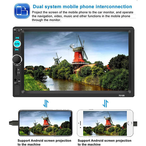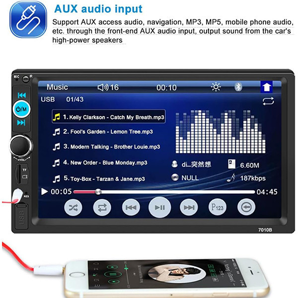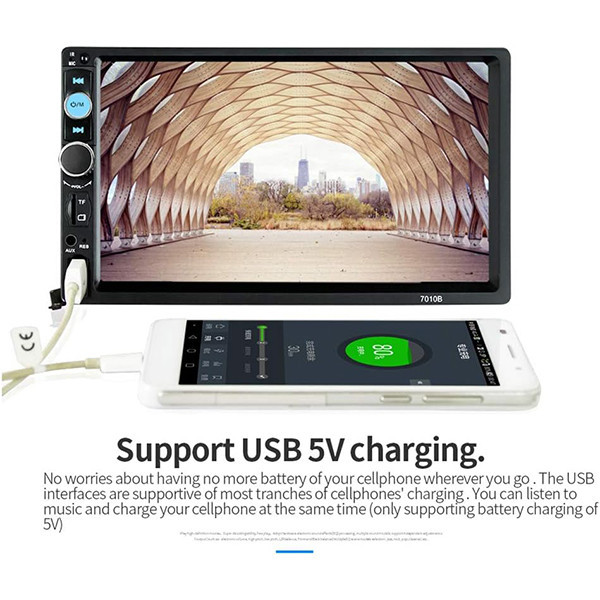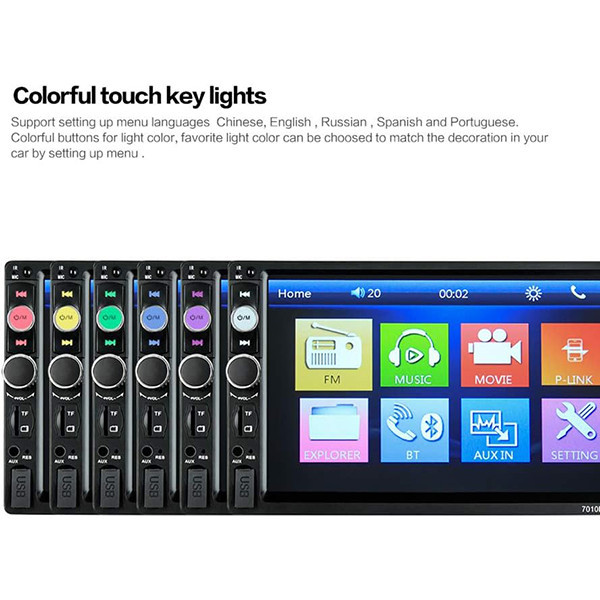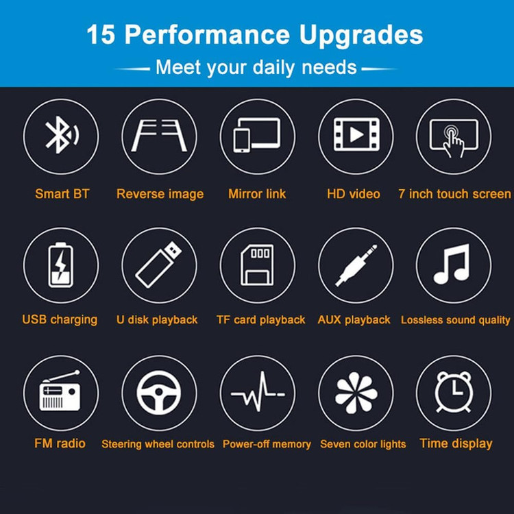 پخش کننده رادیو ماشین با صفحه لمسی دیجیتال 7 اینچی، تصاویر را بسیار واضح تر نشان می دهد، پشتیبانی از اتصال بی سیم دندان آبی و عملکرد تماس تلفنی بدون دست، تیونر الکترونیکی استریو، اسکن و ذخیره خودکار ایستگاه ها، پشتیبانی از عملکرد ورودی دوربین دید عقب، خاموش شدن با عملکرد ذخیره حافظه خودکار در حالت رادیو یا SD/MMC/USB و دارای سایر کارایی پیشرفته و به روز می باشد.