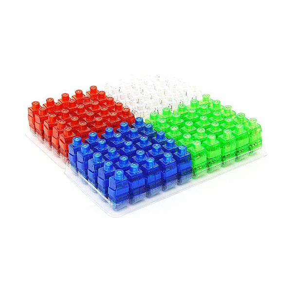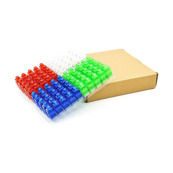 25 عدد رنگ سبز 25 عدد رنگ قرمز 25 عدد رنگ سفید 25 عدد رنگ آبی 300 عدد باتری همراه