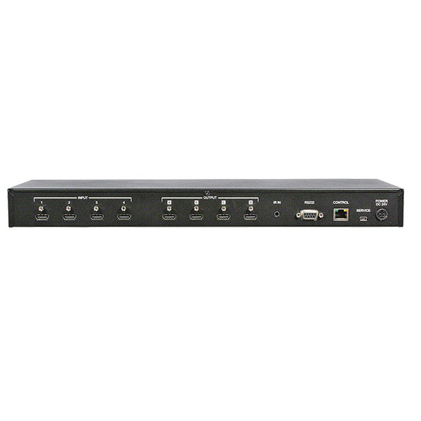 نوع پورتها: ورودی: ۴ عدد HDMI نوع A (ماده)، USB نوع Mini-B (ماده) خروجی: ۴ عدد HDMI نوع A (ماده) کنترل: RS-232 (ماده)، RJ45 (ماده)، 3.5 میلیمتر (ماده) برق: 4 پین DIN