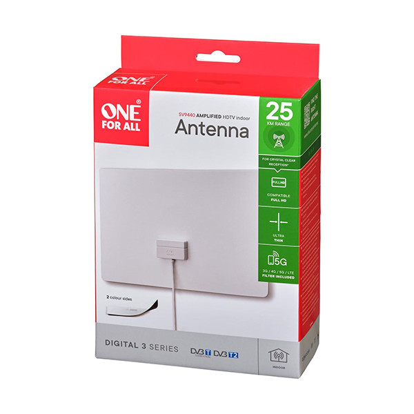 سایر توضیحات: اطلاعات فنی: برند وان فور آل تولیدکننده One For All شماره مدل کالا SV9440-5G ASIN : B09JHB2NL1 آنتن تلویزیون رنگ سفید امپدانس ۵۰ اهم حداکثر برد ۲۵ متر ابعاد محصول 20x13x5 سانتیمتر وزن 460 گرم