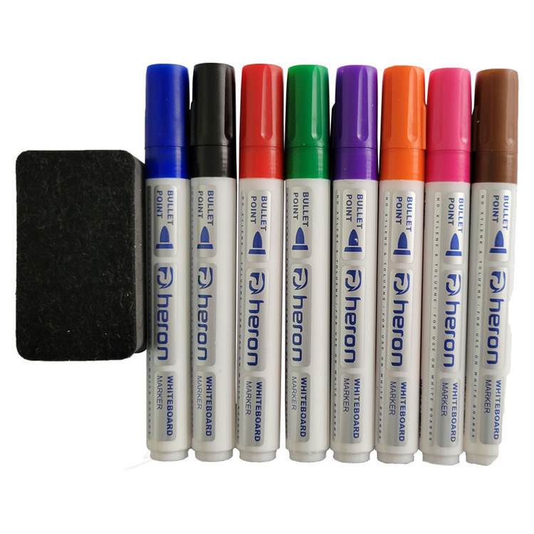 این بسته شامل یک ماژیک آبی ، یک ماژیک مشکی ، یک ماژیک قرمز ، یک ماژیک سبز ، یک ماژیک بنفش ، یک ماژیک نارنجی ، یک ماژیک صورتی ، یک ماژیک قهوه ای ، به همراه یک عدد تخته پاک کن می باشد