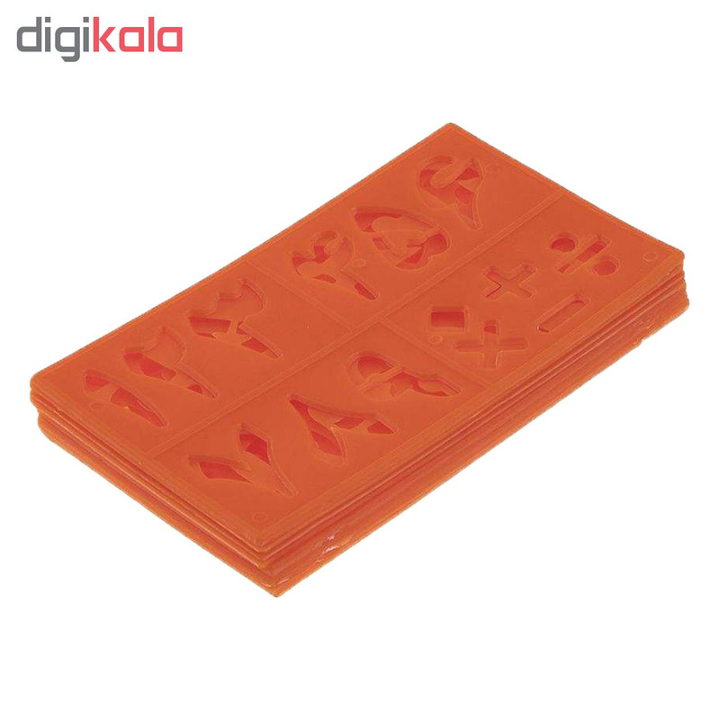 طول13 سانتیمتردرجه بندیسانتیمترسایر توضیحاتشابلون مجموعه 8 عددی دارای حروف الفبا و اعداد فارسی و اعداد و نماد های انگلیسیرنگنارنجی
