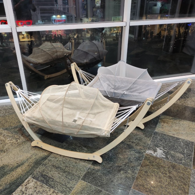 گهواره سنتی ننوئی چوبی تخت کنار مادر باساک حمل و تشک