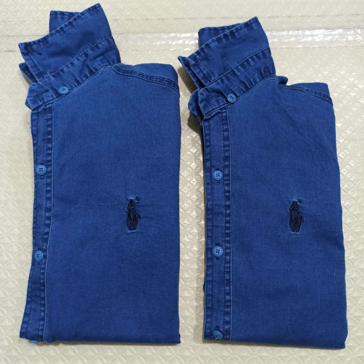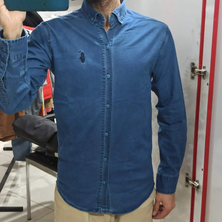 پیراهن جین کاغذی اسلیم فیت آستین بلندبدون جیب