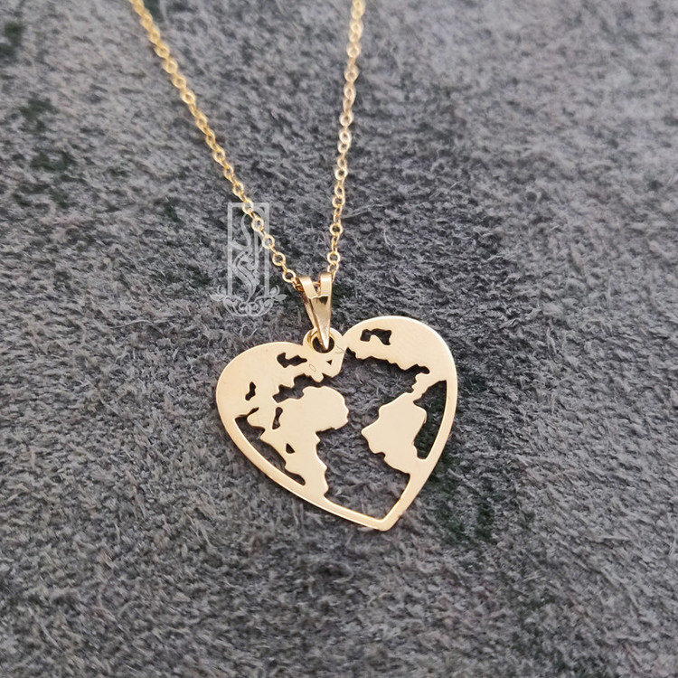 گردنبند طلا 18 عیار دخترانه لیردا مدل قلب و زمین کد akm 002