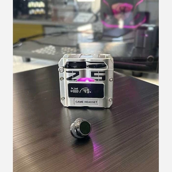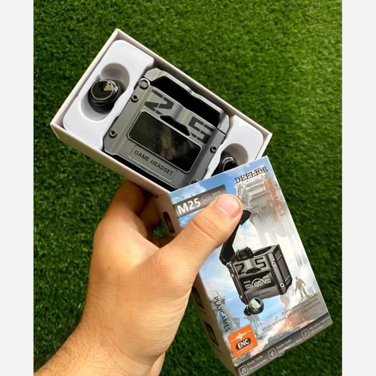 اگر به دنبال تهیه یک هدفون بیسیم گیمینگ و استفاده روزانه هستید ، هدفون بلوتوثی گیمینگ دامیکس مدل DAMIX M25 یک ایرپاد مخصوص بازی و استفاده روزانه است که با طراحی اسپرت با افکت های لامپ های 7 رنگ RGB ظاهر جذاب برای استفاده روزانه را به شما اراِِئه می نماید. این مدل برای اتصال به دستگاه به بلوتوث نسخه 5.3 مجهز شده است و در مدت زمان کوتاه ، اتصال با گوشی موبایل اندروید یا ios شما برقرار خواهد شد.از ویژگیهای اصلی این محصول محفظه نگهدارنده یا همان کیس آن است. این کیس قابلیت شارژ هدفون را دارد. برای شارژ آن کافی است از درگاه USB-C تعبیه شده بر روی کیس و کابل شارژ درون بسته بندی استفاده کنید. همچنین هدفون گیمینگ بلوتوثی دارای یک میکروفون با کیفیت است و این ویژگی ، آن را برای مکالمه مناسب میسازد . از قابلیت های این محصول میتوان به ضد آب بودن ، فعال بودن Siry در آیفون ، HD Voice و ENC است. زیر هدفون گیمینگ بلوتوثی یک پورت خروجی USB نیز قرار دارد که به وسیله آن میتوانید از باتری ایرپاد به عنوان پاور بانک اضطراری نیز استفاده کنید