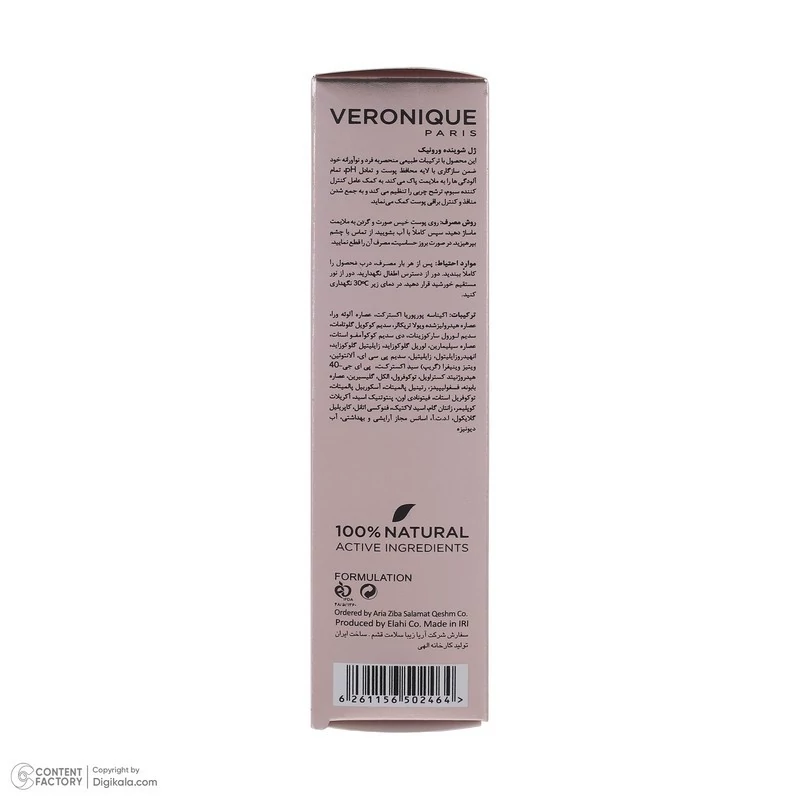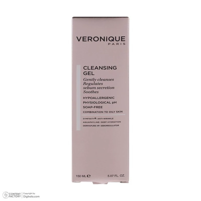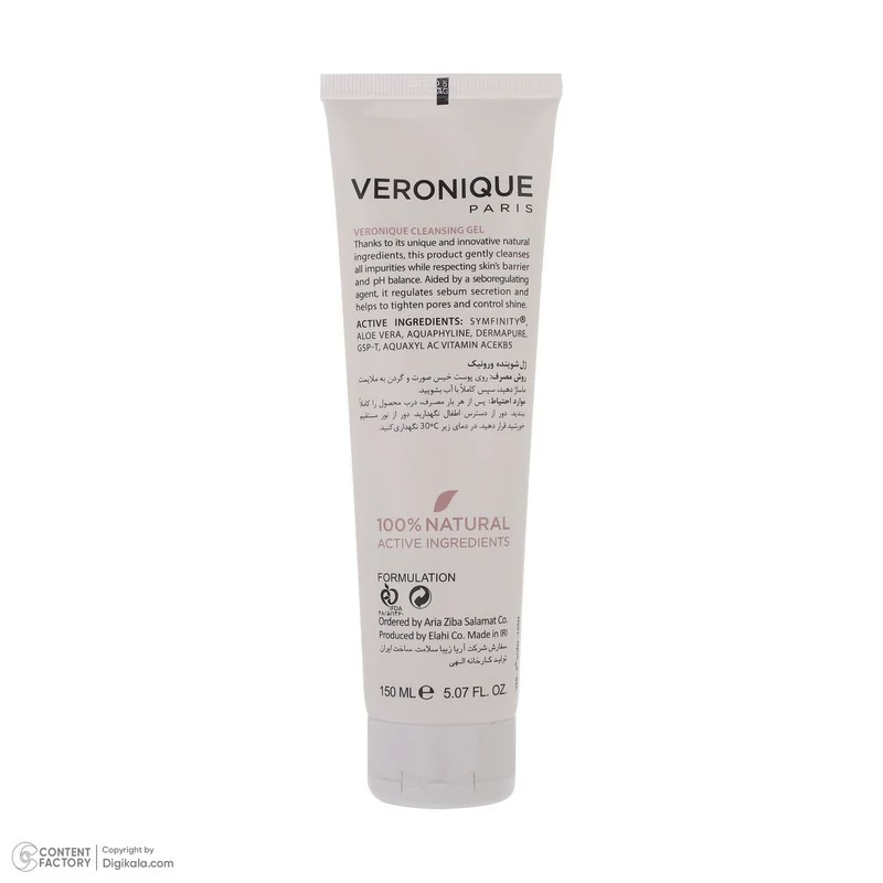 پاک کردن پوست هنگام صبح و شب، اولین راز زیبایی برای داشتن پوستی نرم، لطیف و چهره ای شفاف است. ژل شوینده 150 میلی لیتر ورونیک ملایم بوده و با لایه محافظ و pH پوست سازگار است و دارای عامل جوان کننده SYMFINITY است. ژل شوینده صورت VERONIQUE منجر به رفع چربیهای اضافه پوست میشود و متعادل کننده ترشح چربی پوست است. ژل دارای اسید هیالورونیک است و فاقد صابون میباشد. ژل شستشو ورونیک مناسب پوست چرب، مختلط و آکنه ای است. ژل دارای خاصیت های آنتی اکسیدان، کاهش دهنده قرمزی پوست، ضد حساسیت، تسکین دهنده، التیام بخش پوست، جمع کننده منافذ، تنظیم ترشح سبوم، رطوبت رسان پوست، پاک کننده ملایم پوست و آرایش و تنظیم pH پوست است. ژل شستشو صورت ورونیک تولید ایران است و دارای فرمولاسیون فرانسوی میباشد.