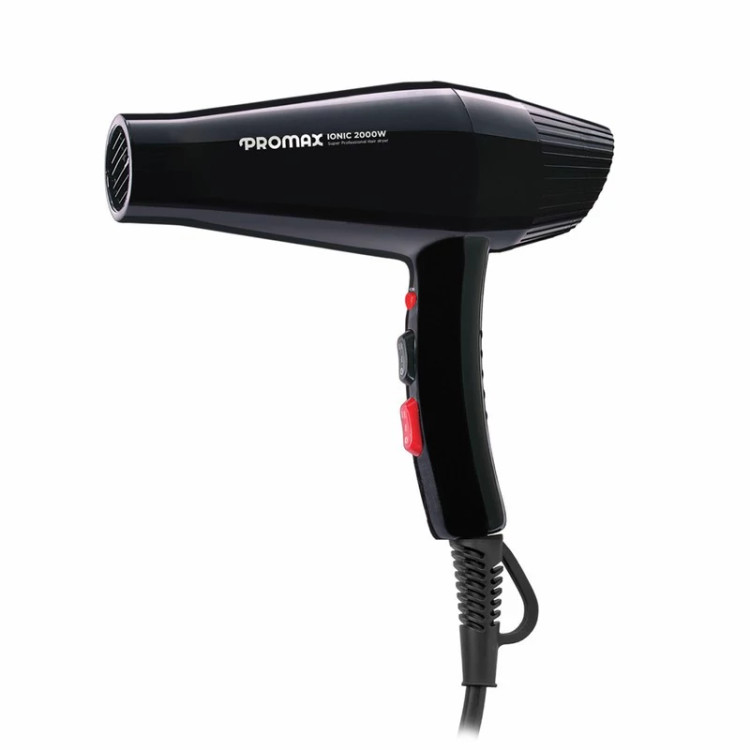 سشوار پرومکس مدل 7200 سشواری حرفهای دارای موتور 2000 وات AC ، دکمهی فناوری تولید یون و سه متمرکز کنندهی هوا است.