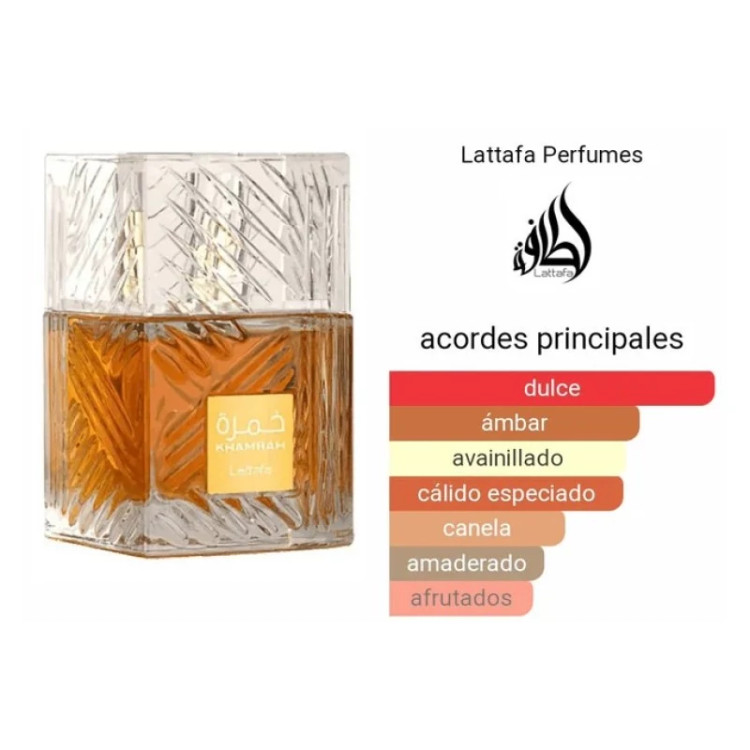 ادکلن عربی خمره لطافه kHAMRAH Lattafa اسپورت (زنانه و مردانه) با استفاده از نتهای چوبی و گیاهان معطر، رایحه ای منحصر به فرد را به شما ارائه می کند. نت آغازین این ادکلن شامل رایحه های برگاموت, دارچین و جوز هندی می باشد. این نت از لحظه ی اعمال ادکلن احساس می شود. زمانی که حس می کنید رایحه ی ادکلن تغییر کرده یعنی به نت میانی رسیده اید. نت میانی ادکلن خمره ترکیب رایحههای لطیف خرما, زنبق وحشی, پرالین و تیوب رز می باشد. در انتها نیز نت ماندگار پایانی را داریم که در طولانی مدت روی لباس یا پوست شما احساس می شود. این نت نیز به عنوان نت پایه تشکیل شده از رایحههای تونکا برشته, مُر, آکیگالاوود, وانیل و چوب کهربا می باشد. نخستین بار در سال 2022 روانه بازار شد به عنوان عطری مردانه - زنانه و بسیار جذاب و شیک معرفی شده است.