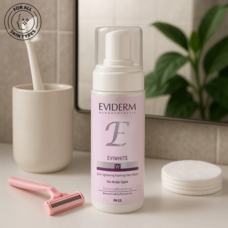 فوم شستوشوی صورت اویدرم مدل Eviwhite مناسب انواع پوست حجم 150 میلیلیتر