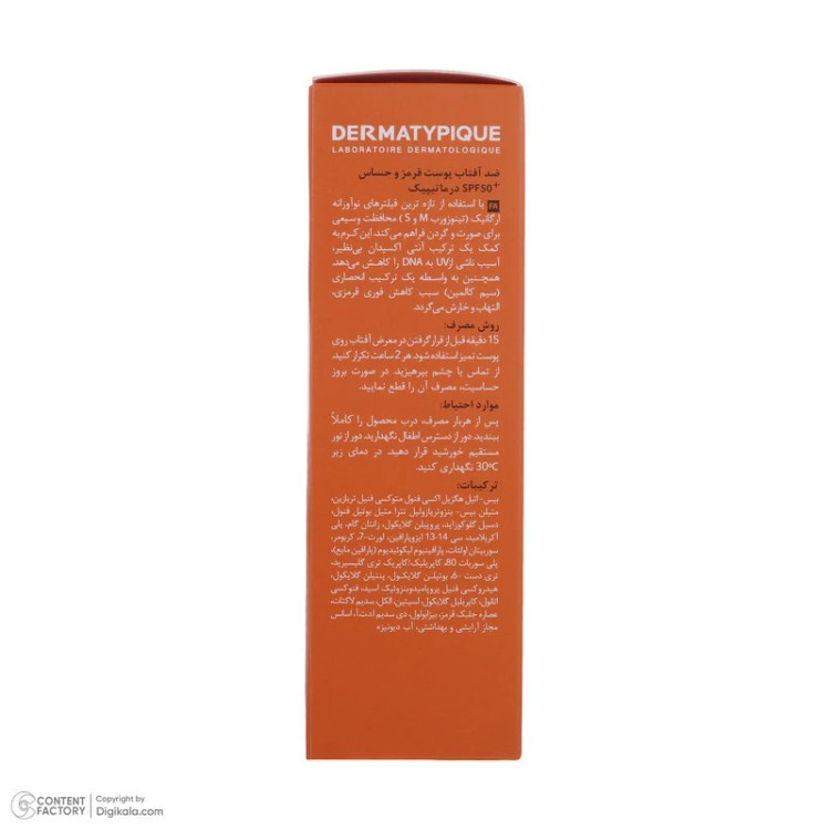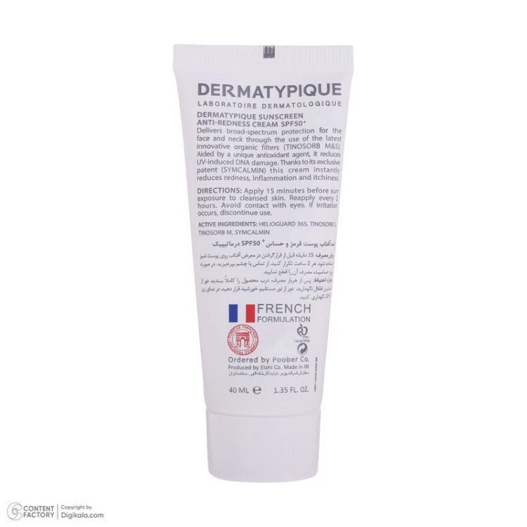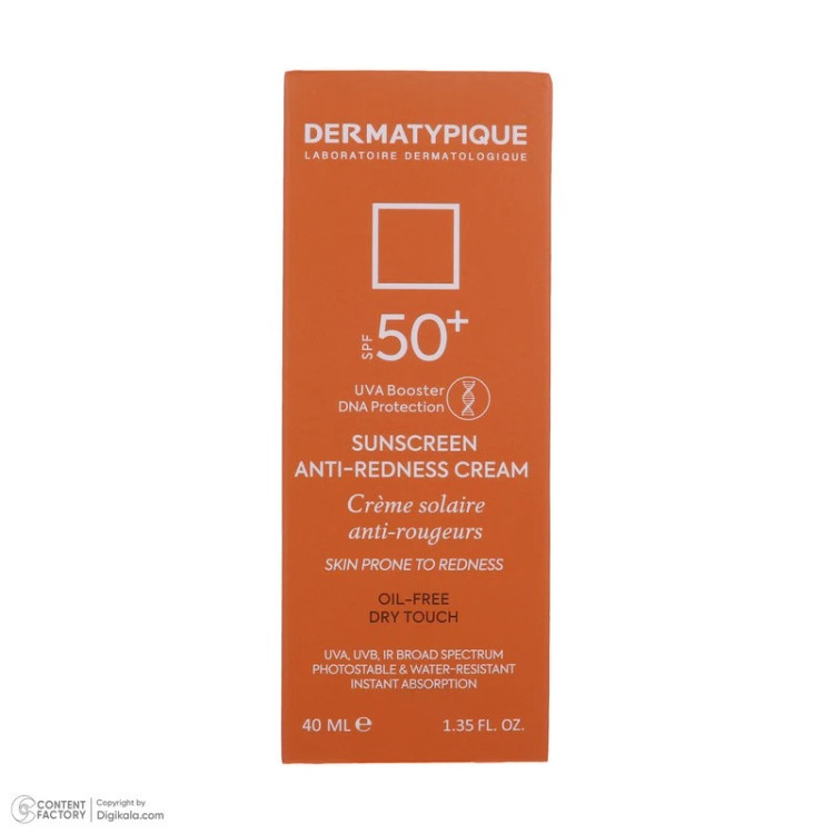 کرم ضد آفتاب بدون رنگ درماتیپیک SPF50 مدل Anti_redness محافط UVB, UVA مناسب انواع پوست حجم 40 میلیلیتر