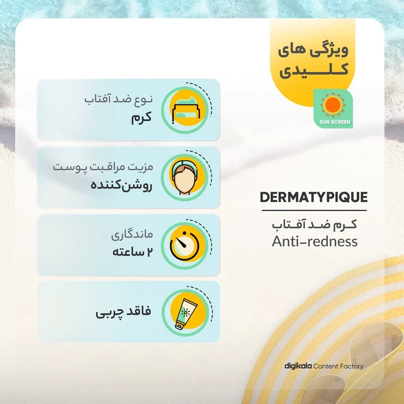 مشخصات-ویژگیهای ضدآفتاب: محافظت کننده در برابر اشعه UVA ، محافظت کننده در برابر اشعه UVB