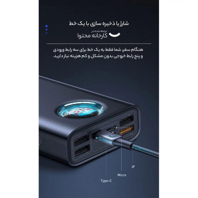 پاوربانک باسئوس مدل Ambilight dighital display BS-30KP365 ظرفیت 30000 میلی آمپرساعت