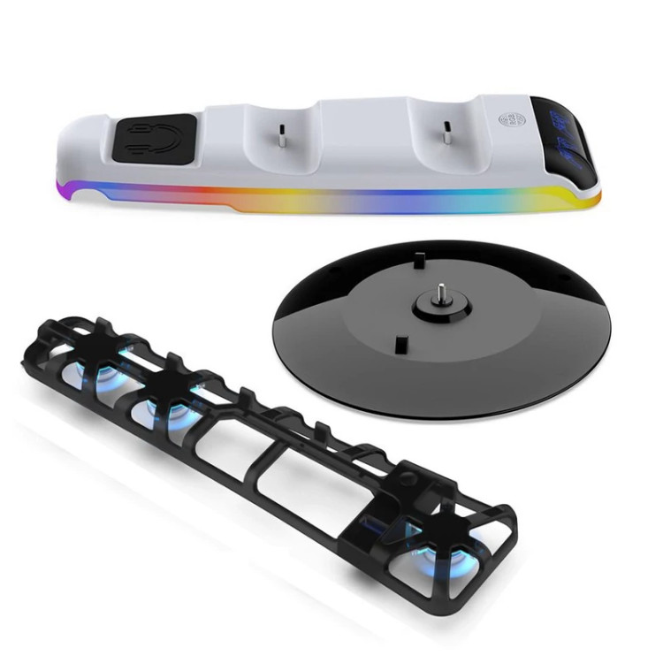 پایه شارژ دوگانه بالای کنسول PS5 SLIM. طراحی شارژ دوگانه: طراحی شده برای جویاستیک PS5، از شارژ همزمان دو جویاستیک پشتیبانی میکند، در زمان شارژ صرفهجویی میکند و راندمان بازی را بهبود میبخشد. محیط رنگارنگ: نور محیطی رنگارنگ داخلی، میتوانید رنگ نور و حالت نور را مطابق با ترجیح خود تنظیم کنید و یک فضای بازی شخصی ایجاد کنید. راحت و آسان برای استفاده: مستقیماً روی کنسول PS5 SLIM قرار میگیرد، نیازی به فضای اضافی نیست، وضعیت شارژ قابل مشاهده است