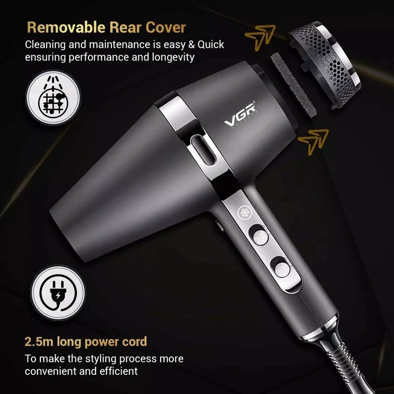 سشوار برسدار چرخشی نیمه حرفهای وی جی ار یک ابزار ایدهآل برای صاف کردن، حجم دادن و حالتدهی به موها است. وی جی ار به همراه دو سری برسدار گرد (باریک و پهن) عرضه میشود که هرکدام برای مدلدهی خاصی طراحی شدهاند. برس گرد باریک برای حجم دادن به موهای نازک و کوتاه، و برس گرد پهن برای حالتدهی موهای بلند و ضخیم کاربرد دارد. این سشوار دارای دو سطح تنظیم سرعت و یک سطح تنظیم دما است که به شما اجازه میدهد میزان حرارت و سرعت را مطابق با جنس موهای خود تنظیم کنید. وجود باد سرد نیز کمک میکند تا مدل موی شما تثبیت شده و از آسیب ناشی از گرما جلوگیری شود. علاوه بر این، موتور DC عملکردی کمصدا و قدرتمند دارد و بهطور یکنواخت گرما را روی موها پخش میکند. حلقه آویختن، طراحی سبک و کمحجم و امکان چرخش برسها، این سشوار را به گزینهای ایدهآل برای افرادی تبدیل کرده که به دنبال ابزاری کاربردی و حرفهای در خانه هستند.