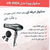 یکی از اصلی ترین لوازم برای خشک کردن و حالت دادن موها سشوار می باشد که جزو پرکاربردترین لوازم به حساب می آید. سشوار ها بسته به نوع استفاده در دسته بندی های متفاوتی قرار می گیرند از جمله سشوار خانگی، سشوار حرفه ای، سشوار فوق حرفه ای و سشوار مسافرتی. برای خرید یک سشوار خوب باید به نوع موتور، قدرت، حرارت، سرعت، دکمه باد سرد و لوازم جانبی توجه داشته باشید. سشوار وربنا مدل VR-9904 یکی از مدل های سشوار برند وربنا که با توان 2200 وات و موتور AC مناسب برای سالن های آرایشگاهی است. این سشوار با سرعت باد بسیار زیاد قابل استفاده برای براشینگ است. از دیگر ویژگی های این سشوار میتوان به دو سری متمرکز کننده هوا و دیسپانسر اشاره کرد. برای حالت دادن و خشک کردن موها با استفاده از دکمه های روی دسته، سرعت و حرارت باد را می توان تنظیم نمود. سرعت باد سشوار وربنا در دو حالت سرعت متوسط و زیاد و سه حالت حرارت ملایم و گرم و داغ را میتوان انتخاب نمود. همچنین دارای سیستم کول شات خنک کننده سریع هوا میباشد.طول سیم سشوار برای استفاده راحت تر و جلوگیری از پیچ خوردن آن 2.5 متر در نظر گرفته شده است. همچنین یک حلقه آویز جهت آویزان کردن سشوار در صورت عدم استفاده از دستگاه قرار گرفته شده است. به همراه محصولی که به شما ارائه میشود یک برس و یک پیشبند نیز ارائه میشود.