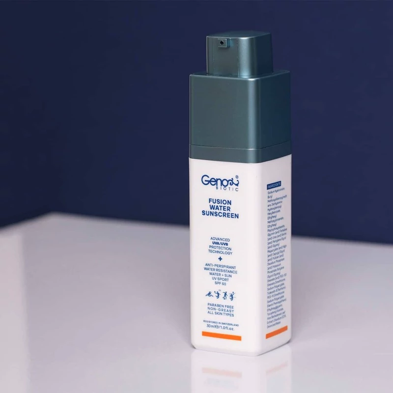 کرم ضد آفتاب فیوژن واتر ژنوبایوتیک حاوی ویتامین E و هیالورونیک اسید است که به پوست در مقابل اشعههای مضر خورشید حفاظت میکند. هیالورونیک اسید به عنوان یک آبرسان قوی عمل میکند و از خشکی پوست جلوگیری میکند. این ترکیب همچنین منجر به تسریع در بهبود زخم، از بین بردن زبری و جلوگیری از ظهور چین و چروک در پوست میشود. ویتامین E موجود در این محصول دارای خاصیت آنتیاکسیدانی بالاست که به افزایش ارتجاع پوست کمک میکند. این ویتامین به مبارزه با رادیکالهای آزاد میپردازد و از کدری پوست جلوگیری میکند. کرم ضد آفتاب فیوژن واتر ژنوبایوتیک همچنین مقاوم در برابر آب و تعریق بوده و برای استفاده قبل از فعالیتهای ورزشی مناسب میباشد. همانطور که میدانید اشعه UV توسط خورشید به پوست میرسد و خطر ابتلا به سرطان پوست را افزایش میدهد. بنابراین استفاده از کرمهای ضدآفتاب به منظور محافظت از پوست در برابر اشعههای مضر آفتاب امری ضروری است. ضد آفتاب از آفتابسوختگی جلوگیری میکند، مانع از پیری زودرس شده و از تجزیه کلاژن جلوگیری میکند. پیشگیری از ایجاد چین و چروک، کاهش لکهها و تیرگیهای پوست، ممانعت از تغییر رنگ و برنزه شدن پوست و در نتیجه افزایش سلامت پوست نیز شامل نحوه عملکرد ضد آفتاب بر پوست میشود. خوشبختانه کرم ضد آفتاب فیوژن واتر ژنوبایوتیک دارای فیلترهای UV است و از آسیب به ساختار DNA و بروز سرطان پوست جلوگیری میکند.