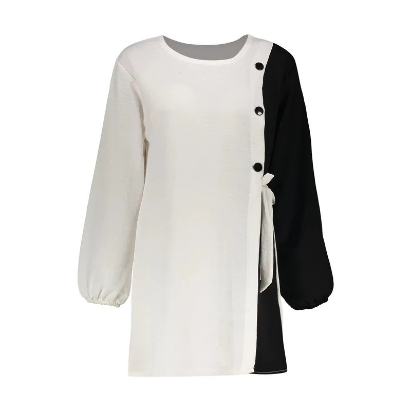 ست تونیک و شلوار زنانه مدل ابر و بادی کد 705 یکی از انتخابهای بهاری و تابستانی مناسب برای خانمهای شیکپوش است. این ست با جنس ابر و بادی خود، احساس راحتی و خنکی را به همراه دارد و مناسب برای استفاده در روزهای گرم و آفتابی میباشد. استفاده از جنس ابر و بادی در این ست، آن را به یک انتخاب مناسب برای فصل بهار و تابستان تبدیل کرده است. این جنس نرم و خنکی دارد که در مواجهه با آفتاب و هوای گرم، احساس راحتی و خنکی را برای پوست فراهم میکند. ست تونیک و شلوار ابر و بادی کد 705 دارای آستینهای بلند و قد زیر باسن است که به زیبایی و شیوهای خاص به این لباس میبخشد. این طراحی مناسب برای پوشیدن در روزهای معتدل بهار و تابستان است و احساس راحتی و آسایش را برای خانمها به ارمغان میآورد.رنگ تونیک ترکیبی از رنگ های سفید و مشکی میباشد.دارای دکمه مخفی در جلو پیراهن است که امکان اینکه به مشتری طبق سلیقه خود می تواند پارچه مشکی و سفید به هم متصل و یا باز باشد را می دهد