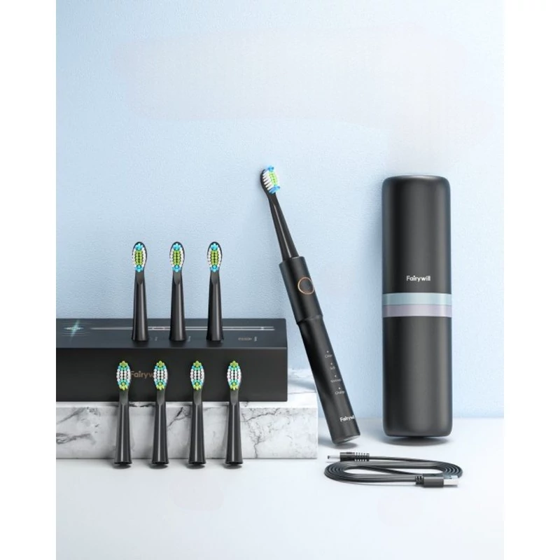• برای ایمنی و راحتی، پس از شارژ کامل به طور خودکار خاموش میشود. Fairywill E11 کاملاً قابل حمل طراحی شده است و با یک کابل USB با ولتاژ جهانی، 110 ولت – 240 ولت برای حداکثر سازگاری شارژ میشود.