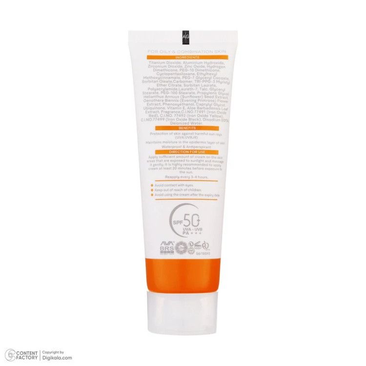 ویژگیهای ضدآفتاب: محافظت کننده در برابر اشعه UVA، محافظت کننده در برابر اشعه UVB، فاقد پارابن، ضد آب، غیر کومدون زا