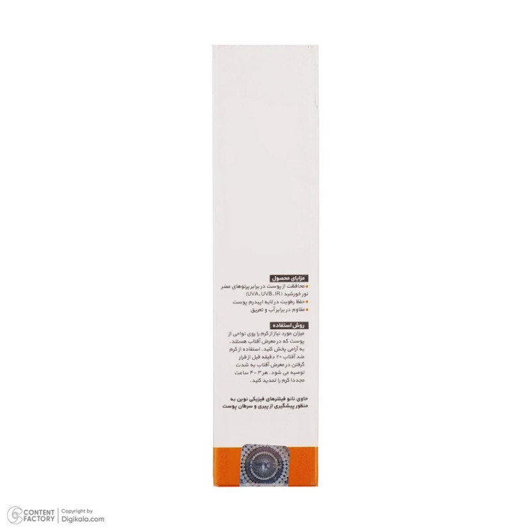 مشخصات-راهنمای استفاده: بیست دقیقه قبل قرار گرفتن در آفتاب از کرم استفاده کنید و هر 4 -3 ساعت آن را مجددا تجدید کنید.