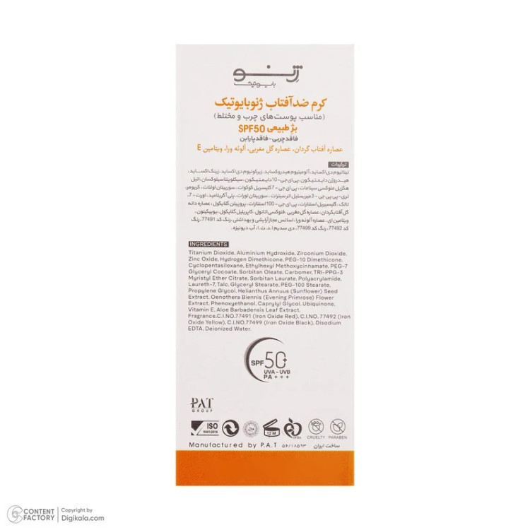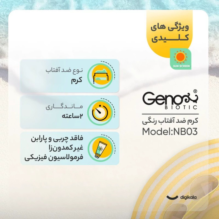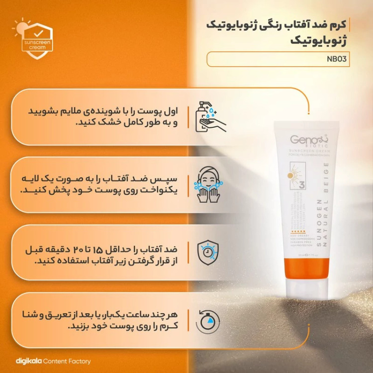 کرم ضدآفتاب ژنوبایوتیک مدل NB03، حجم 50 میلیلیتر