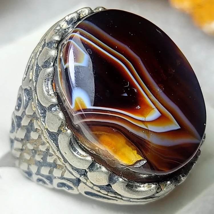 انگشتر مجلسی فاخر عقیق سلیمانی با نقش کمیاب آتشین