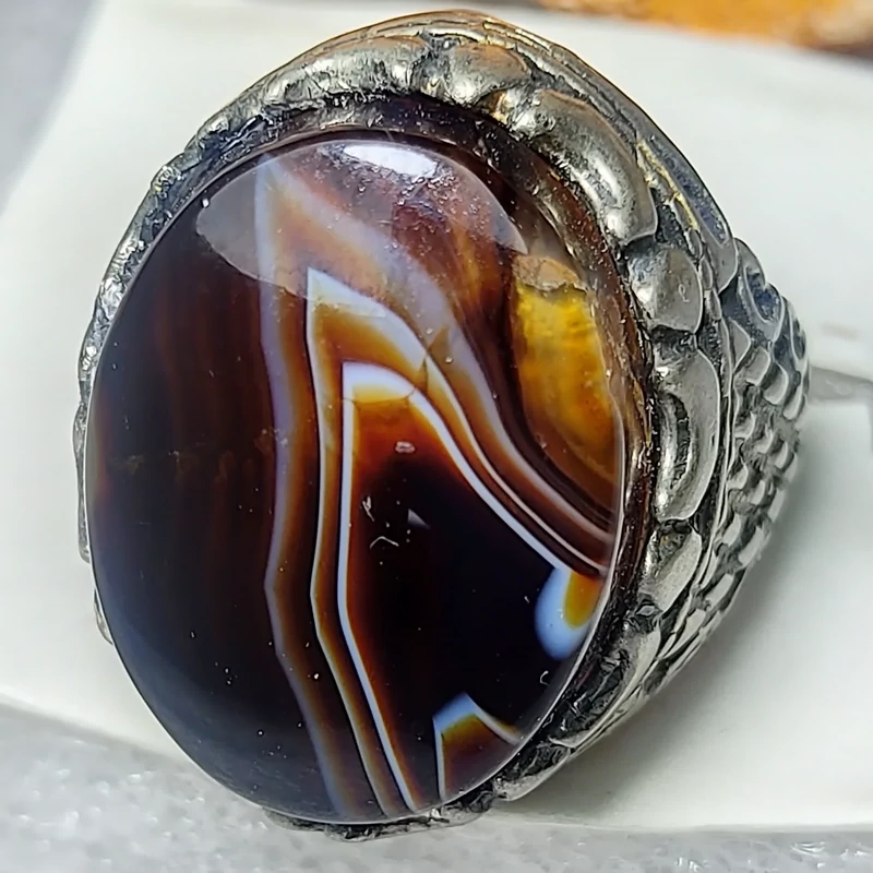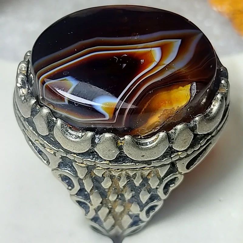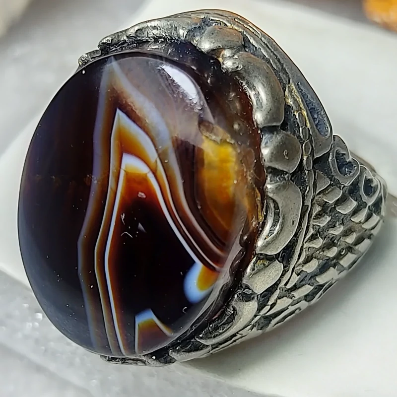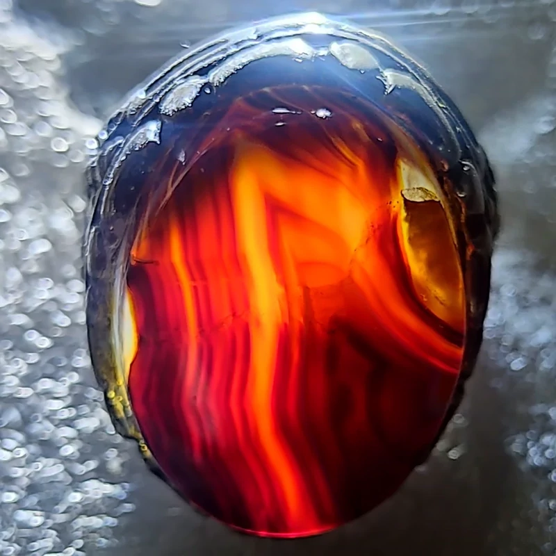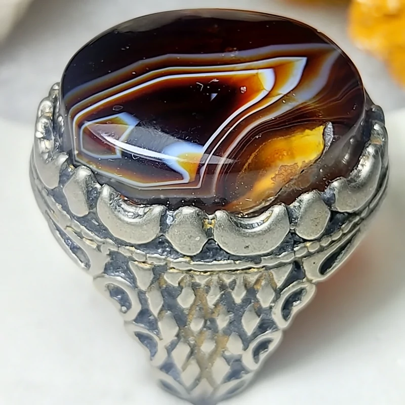 انگشتر مجلسی فاخر عقیق سلیمانی با نقش کمیاب آتشین