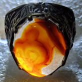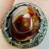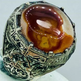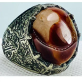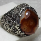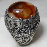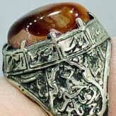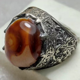 انگشتر موکلدار جزع یمنی بسیار خاص رکاب هنری قلمزنی