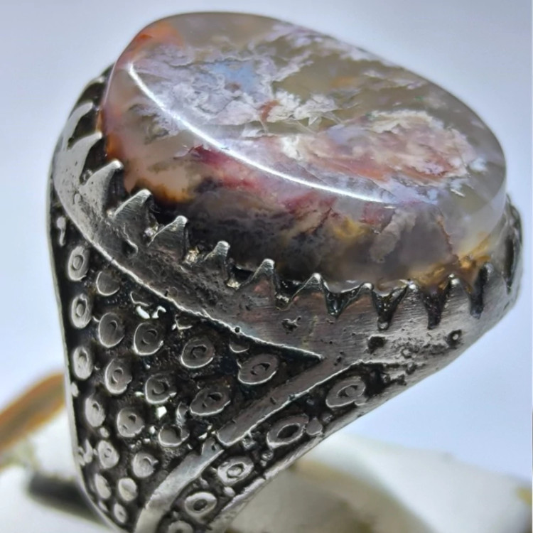 انگشتر اعجوبه و بسیار زیبای شجر دریایی مصور کهربایی