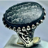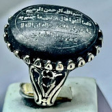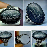 انگشتر نقره درشت حدید حکاکی خطی آیه دار رکاب دندانه پربرکت وزن 16 گرم با نگین سنگ کاملا طبیعی و معدنی