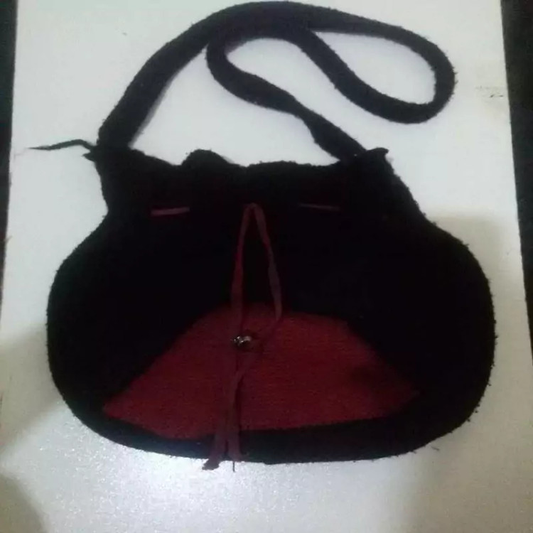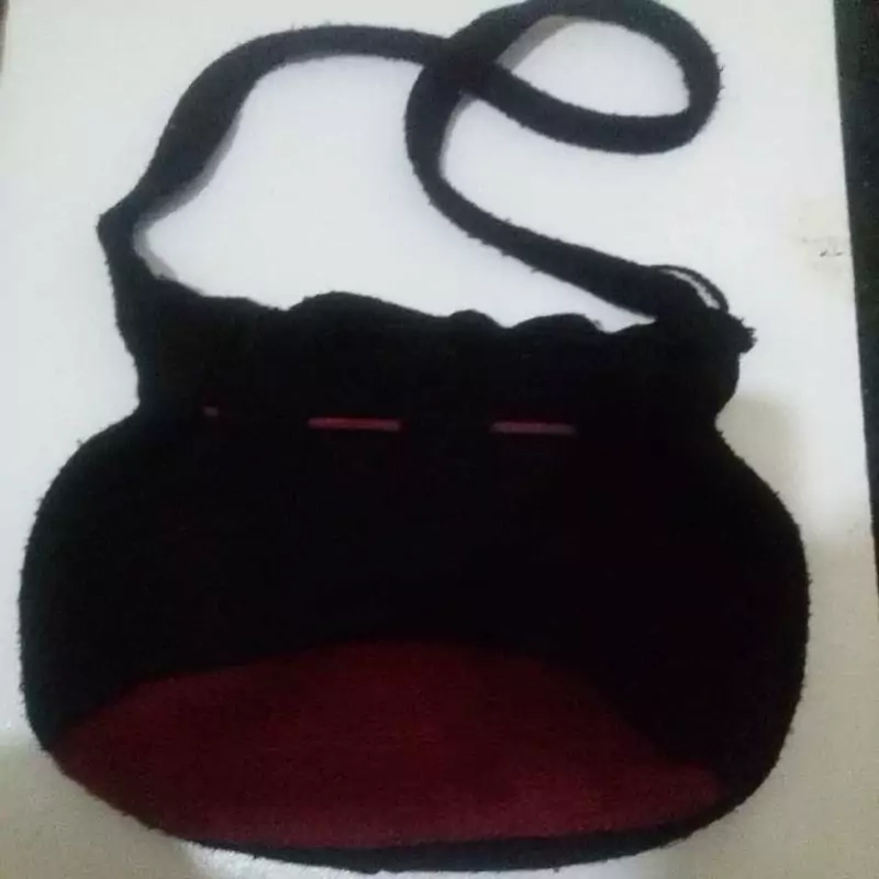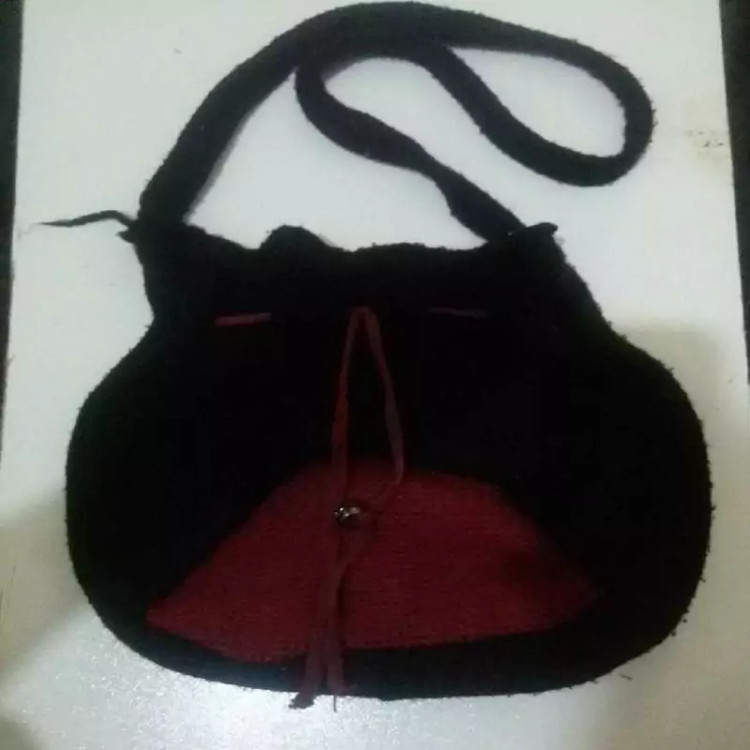 کیف زنانه رودوشی و دستی کاموایی زنانه و دخترانه بافت دو رنگ مشکی و قرمز با ترکیب رنگ زیبا و اندازه متوسط