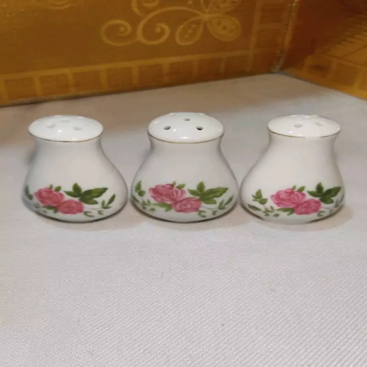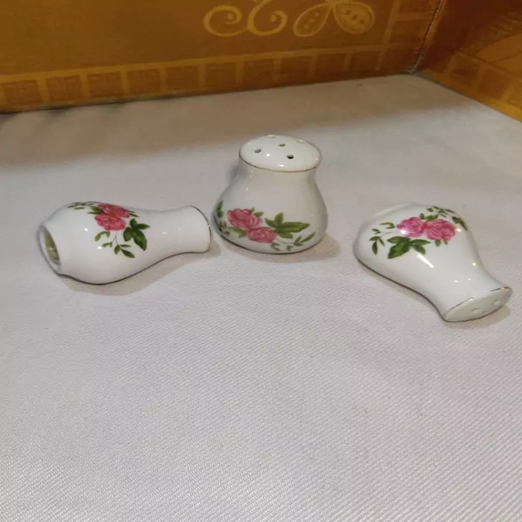 یک دست 6 عددی نمکدان چینی گلسرخی اصل ساخت چین
