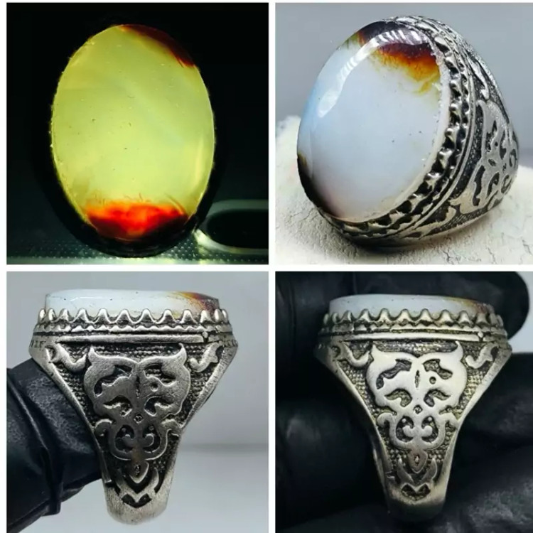عقیق تلفیقی یمنی استثنایی عقیق سفید یخی یمن و عقیق کبدی خونی یمانی اصل