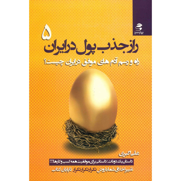 کتاب «راز جذب پول در ایران – جلد پنجم» نوشته «علی اکبری» است. در این کتاب به معرفی این موضوع که راه و رسم آدمهای موفق در ایران چیست، پرداختهشده است. در قسمتی از متن این کتاب میخوانید: «خواننده گرامی و عزیزتر از جانم: تا آخر این کتاب تکرار تکرار تکرارهایی رو از آدمهای موفق میبینی که همه و همه به هم ربط دارن و من از این روش در کتابم استفاده کردم تا بتونم در پایان کتاب چند تا از این تکرارها را جایگزین اخلاقهای ضد موفقیت شما کنم. لطفا توهم همراه با تکرارهای من تکرار کن تا در پایان کتاب تبدیل به یک آدم موفقتر و بهتری شده باشی. بذار این سیستم تکرار تکرار تکرار را بیشتر برایت توضیح بدم: شما چرا فارسی رو آنقدر خوب صحبت میکنی؟ شما چرا رانندگیات خوب شده؟ شما چرا آنقدر خوب شنا میکنی؟ و... درواقع همهی این موفقیتها مربوط به تکرار است. از این به بعد تا می تونی تکرار تکرار تکرار کتابهای موفقیت و آدمهای موفق باش. بعد از یک مدتی مانند اونها می شی، شک نکن.» این کتاب توسط انتشارات «بهار سبز» منتشر شده است.
