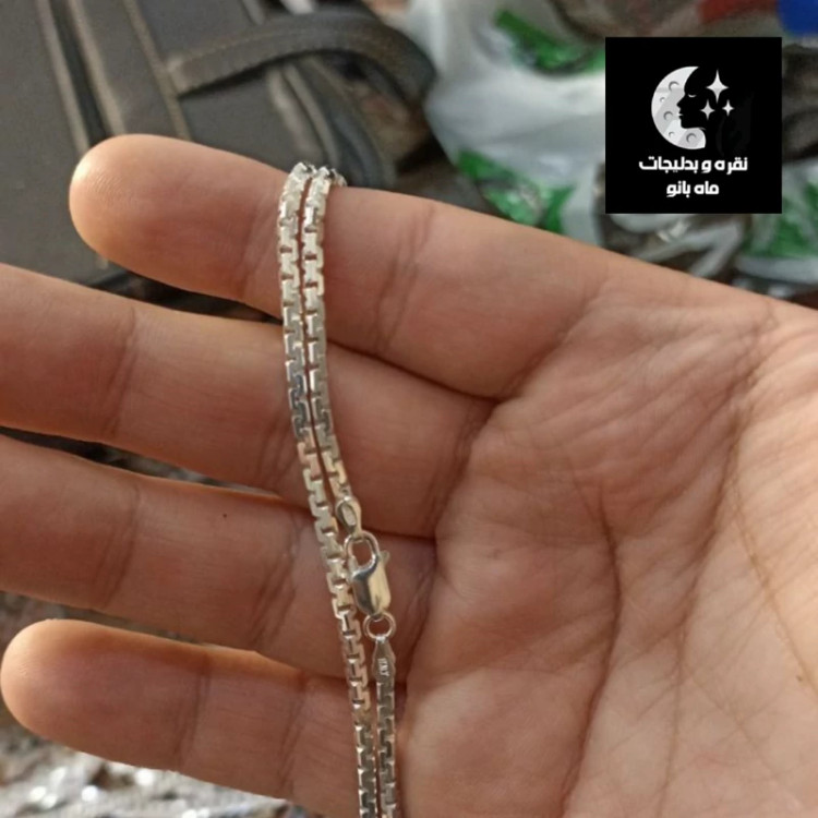 زنجیر نقره مردانه ونیزی ایتالیایی باعیار 925 و آبکاری طلا سفید