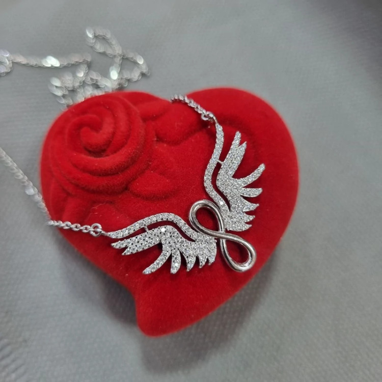 گردنبند نقره زنانه بال فرشته بی نهایت عیار 925استاندارد بدون ریزش نگین ضد حساسیت