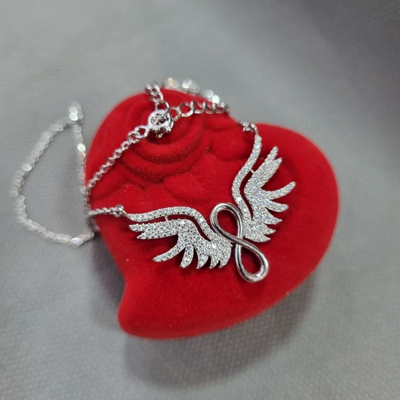 گردنبند نقره زنانه بال فرشته بی نهایت عیار 925استاندارد بدون ریزش نگین ضد حساسیت
