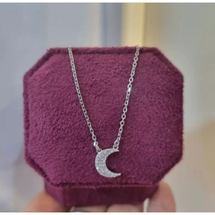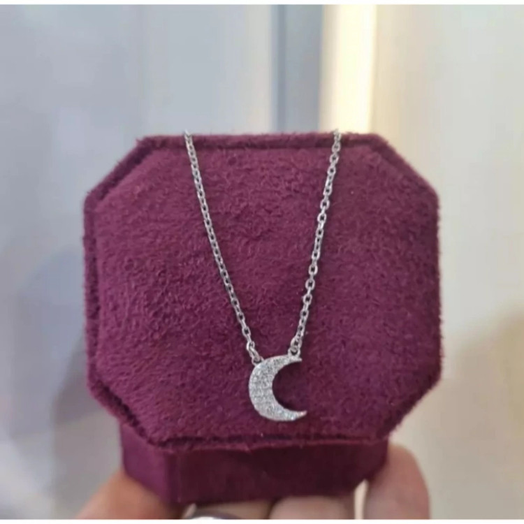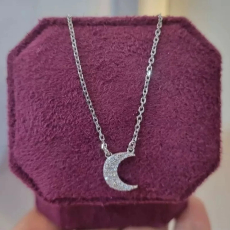 گردنبند نقره زنانه طرح ماه عیار 925استاندارد بدون ریزش نگین ضد حساسیت