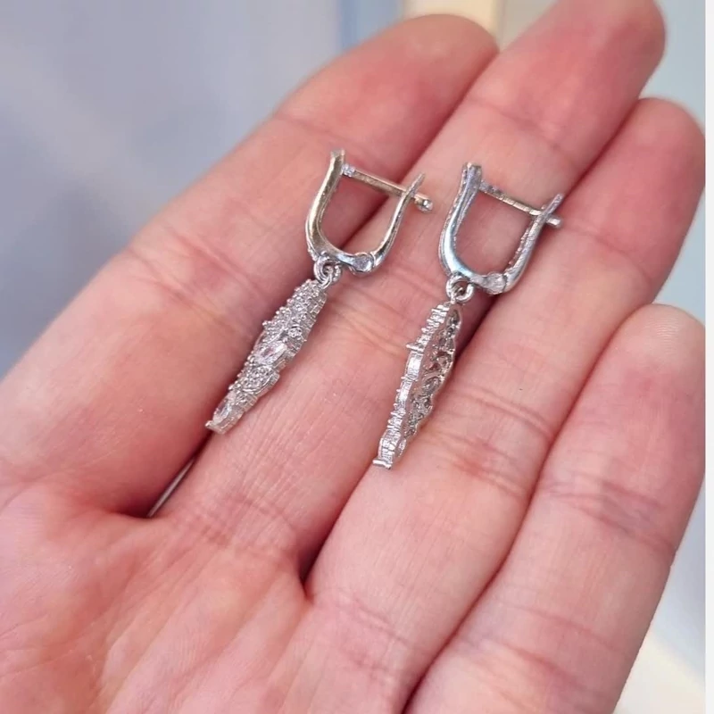 گوشواره نقره زنانه آویز عیار 925 با آبکاری طلا سفید