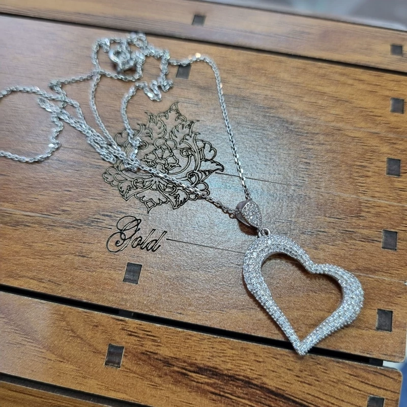 گردنبند نقره زنانه قلبی عیار 925 آبکاری طلا سفید